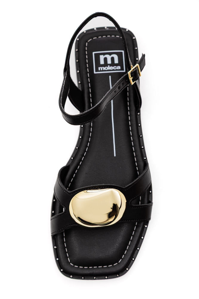 Para um passeio de fim de tarde ou um almoço ao ar livre, combine a Sandália Moleca Rasteira com um vestido midi leve em tons neutros ou florais. Acrescente uma bolsa tiracolo pequena e acessórios dourados para harmonizar com os detalhes da sandália. O look fica fresco, confortável e com um toque elegante, perfeito para a ocasião.