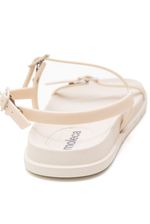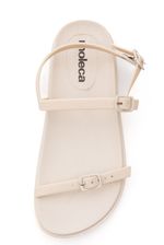 Para um look casual e elegante, combine a sandália rasteira Moleca com um vestido midi floral, bolsa tiracolo neutra e brincos dourados delicados. Finalize com uma maquiagem leve e cabelo preso em coque baixo. Ideal para um almoço ao ar livre ou passeio no fim de semana, unindo conforto, frescor e estilo em cada detalhe.