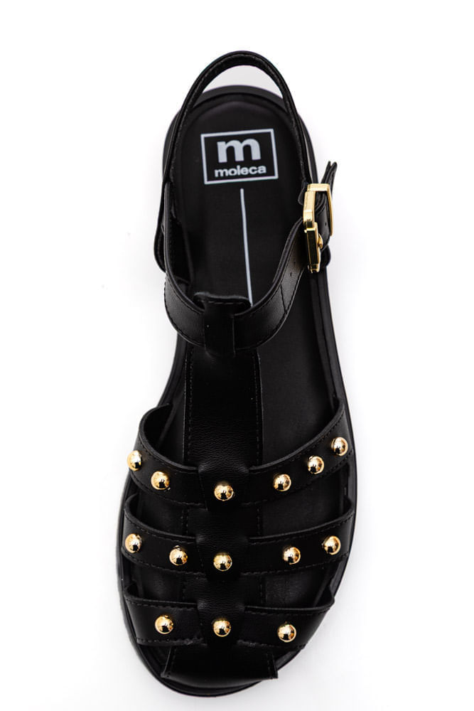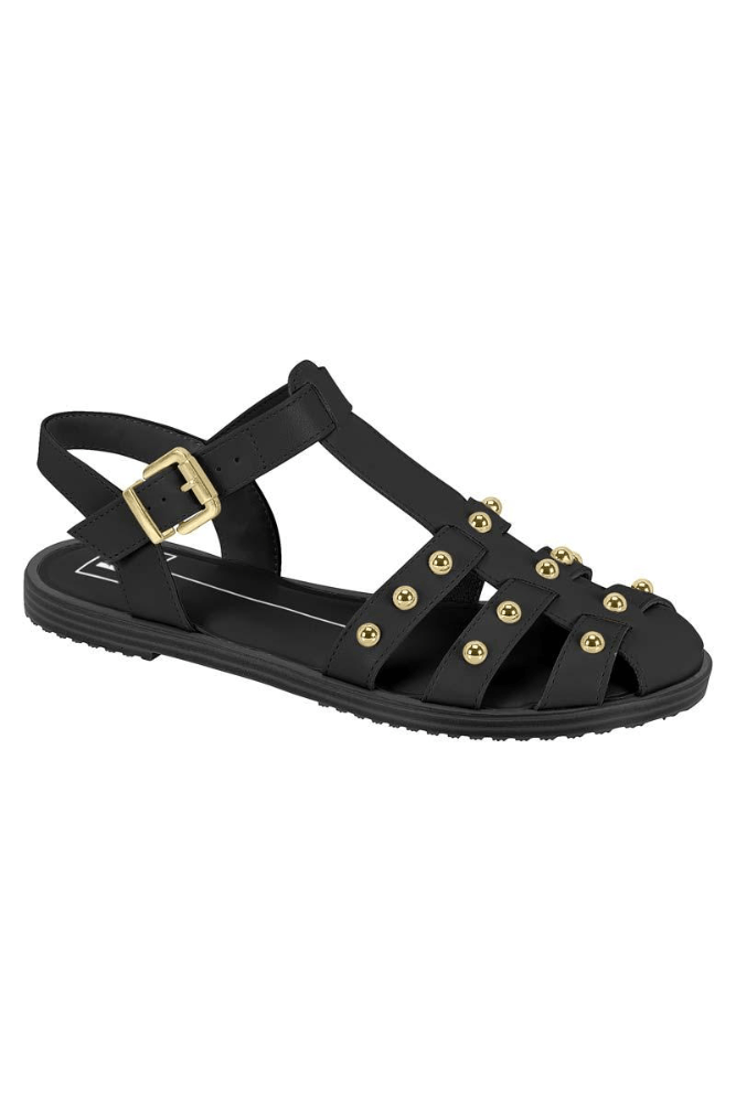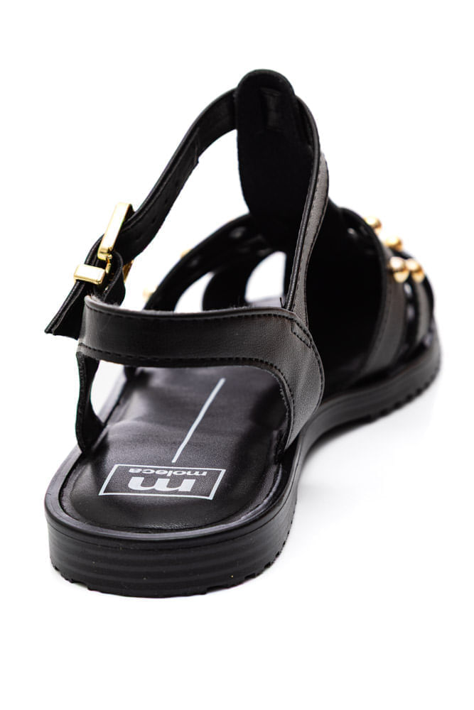 Sandália Moleca Rasteira Feminina Tiras Com Aplicações 5555.202 Preto