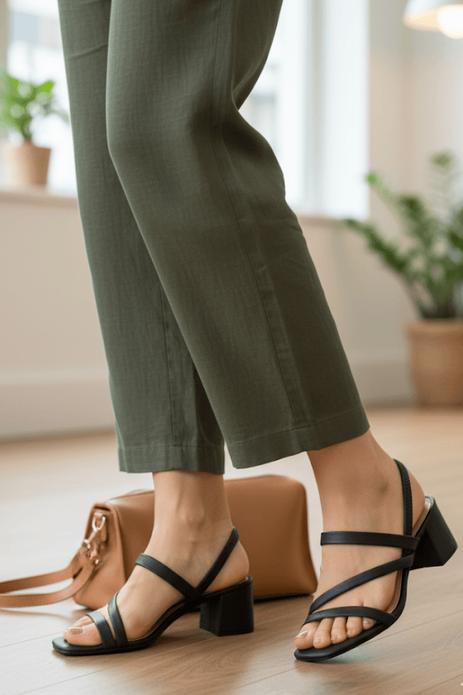 Para um almoço de fim de semana elegante, vista um vestido midi fluido em tom pastel, acompanhado de uma jaqueta jeans cropped. Use a Sandália Moleca Salto Baixo com tiras cruzadas para realçar o look minimalista. Complete com uma bolsa tiracolo em palha, brincos delicados de argola e óculos de sol aviador. O resultado é leve, moderno e cheio de charme.