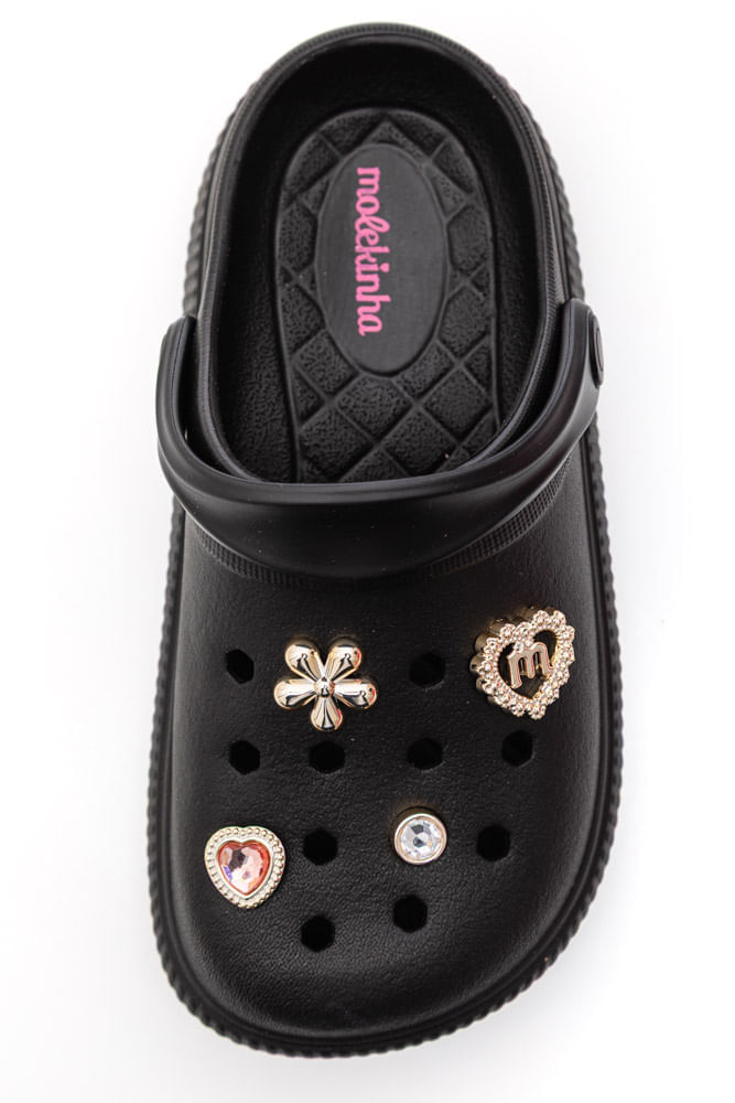 A Sandália Molekinha Babuche Juvenil Menina Bottons Removíveis 2591.103 é perfeita para meninas que amam conforto e estilo. Da categoria casual, é confeccionada em gáspea de PVC resistente e leve, com bico arredondado e solado antiderrapante que garante segurança ao caminhar. Possui palmilha macia e anatômica, oferecendo conforto durante todo o dia. A tira móvel no calcanhar permite um ajuste firme ou pode ser usada sobre o cabedal para mais praticidade. O destaque fica por conta dos bottons removíveis decorativos, que adicionam charme e permitem personalizar o visual conforme o gosto da criança. Moderna, divertida e fácil de limpar, essa babuche é ideal para acompanhar o dia a dia das meninas com estilo, conforto e um toque de brilho especial.