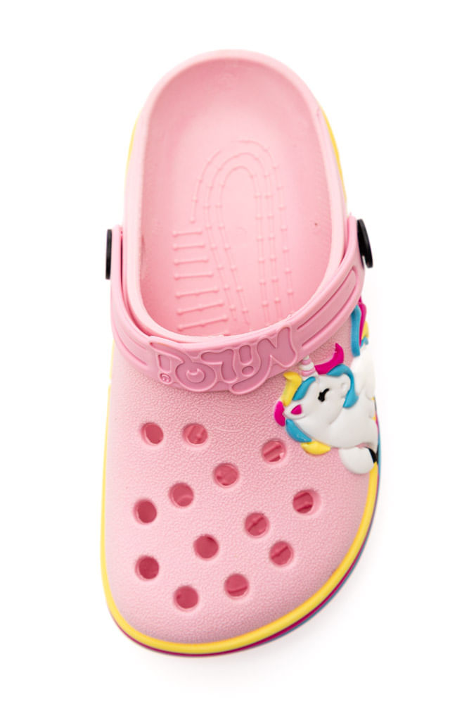 SANDALIA NILQI 060.2.1 Sandália Clog Infantil Nilqi 060.2.1 - Magia e Conforto para os Pezinhos! Transporte os pequenos para um mundo de fantasia com a Sandália Clog Nilqi 060.2.1, a escolha perfeita para unir diversão, conforto e muita cor! Este modelo adorável na cor rosa vibrante é decorado com um unicórnio encantador, ideal para as brincadeiras e o dia a dia. Características: Design Lúdico de Unicórnio: O destaque fica por conta do aplique 3D de um unicórnio branco com crina e cauda em cores de arco-íris na lateral do cabedal, estimulando a imaginação e a alegria. Cores Vibrantes: Em um tom de rosa alegre, o calçado conta com um solado listrado nas cores do arco-íris (rosa, amarelo, azul e roxo), adicionando um toque extra de vivacidade. Conforto e Leveza: Fabricado em material leve e macio, proporciona conforto excepcional para os pés, sendo ideal para uso prolongado e fácil de limpar. Ventilação e Praticidade: O cabedal possui furos estratégicos que garantem a ventilação dos pés, mantendo-os frescos. O design clog com tira traseira móvel permite usá-lo como chinelo ou sandália, adaptando-se à necessidade. Durabilidade e Segurança: O solado resistente e antiderrapante oferece segurança em diversas superfícies, acompanhando a energia das crianças. Fácil de Calçar e Manter: Material resistente à água e de secagem rápida, ideal para uso na praia, piscina ou em ambientes que exigem praticidade na limpeza. A Sandália Clog Nilqi 060.2.1 é a companheira perfeita para as meninas que amam a magia dos unicórnios e buscam um calçado divertido, confortável e cheio de personalidade para todas as suas aventuras!