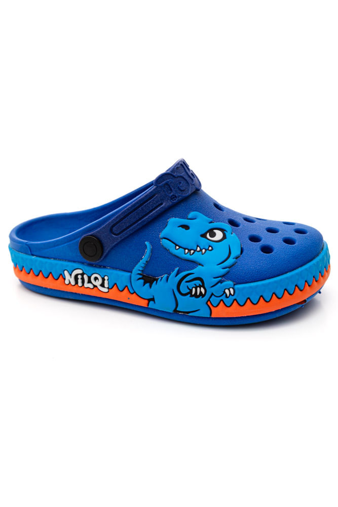 SANDALIA NILQI 060.8.5 Sandália Clog Infantil Nilqi 060.8.5 - Aventura Jurássica para os Pezinhos! Prepare-se para uma expedição cheia de diversão com a Sandália Clog Nilqi 060.8.5, o calçado perfeito para os pequenos aventureiros que são fascinados por dinossauros! Este modelo vibrante na cor azul é ideal para brincadeiras e o dia a dia, combinando conforto e um toque selvagem. Características: Design Lúdico de Dinossauro: O grande destaque fica por conta do aplique 3D de um dinossauro (T-Rex) na lateral do cabedal, em um tom de azul mais claro, que convida à imaginação e à diversão. Cores Vívidas: Em um marcante tom de azul royal, o calçado possui um solado com detalhes coloridos em laranja e azul claro, com uma borda em zigue-zague, adicionando um visual alegre e dinâmico. Conforto e Leveza: Fabricado em material super leve e macio, proporciona conforto excepcional para os pés, sendo ideal para uso prolongado e fácil de limpar. Ventilação e Praticidade: O cabedal conta com furos estratégicos que garantem a ventilação dos pés, mantendo-os frescos. A tira traseira móvel permite usá-lo como chinelo ou sandália, adaptando-se à necessidade. Detalhe da Marca: O nome "NILQI" está em destaque na lateral do solado, garantindo a autenticidade do produto. Durabilidade e Segurança: O solado resistente e antiderrapante oferece segurança e estabilidade em diversas superfícies, acompanhando a energia das crianças. A Sandália Clog Nilqi 060.8.5 é a companheira perfeita para os meninos que amam dinossauros e buscam um calçado divertido, confortável e cheio de personalidade para todas as suas aventuras!