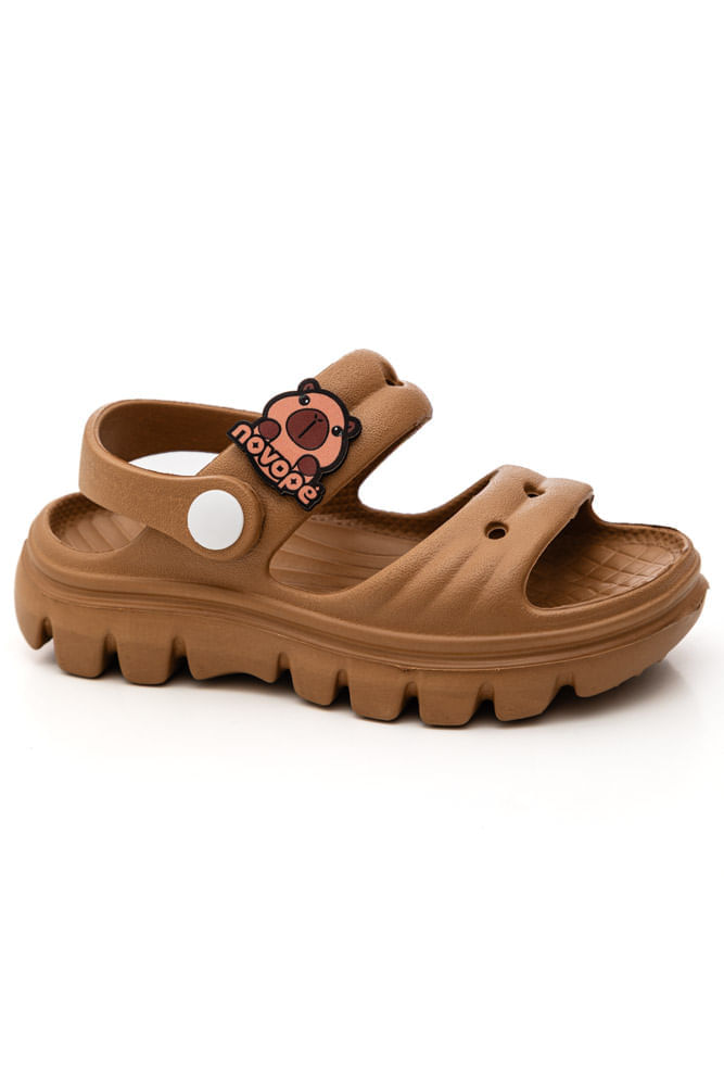 A Sandalia Novope Juvenil Unissex Capivara 57001001-966 é ideal para o dia a dia infantil, unindo conforto, segurança e um visual divertido. Da categoria sandálias infantis, ela conta com cabedal em material sintético resistente, com duas tiras largas reforçadas que garantem firmeza ao caminhar, sem necessidade de fechamento, facilitando o calce. A sola robusta em material leve possui design tratorado, oferecendo ótima aderência e estabilidade. O bico é arredondado, proporcionando conforto aos dedos, e não possui salto, mantendo a pisada natural. A palmilha anatômica é macia e se adapta ao formato do pé. O grande destaque fica para o aplique lúdico na lateral, que chama atenção e encanta as crianças. Como benefício, oferece liberdade, conforto e segurança para acompanhar todas as brincadeiras.