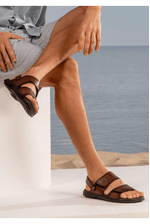 Para um passeio de fim de semana ou compromissos casuais, combine a sandália Pegada em couro com bermuda chino, camiseta básica e camisa leve aberta. Finalize com relógio esportivo e óculos de sol. O visual fica confortável, moderno e prático, ideal para quem quer estilo e bem-estar em momentos de lazer ou no dia a dia.