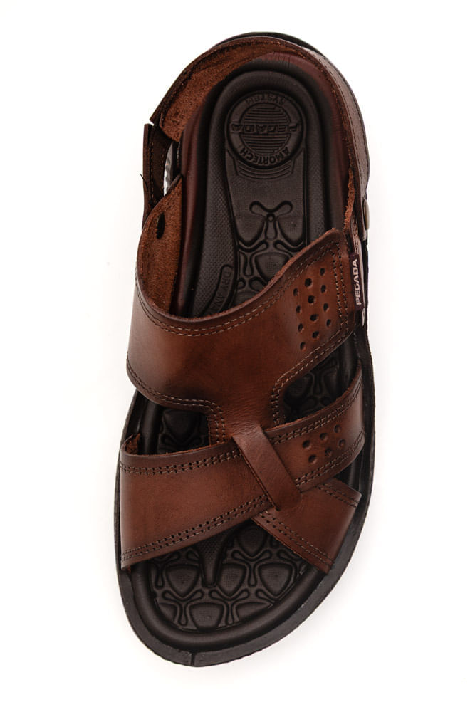 Para um passeio ao ar livre ou compromisso casual, combine a sandália Pegada com bermuda chino bege, camiseta de algodão em tons neutros e cinto de couro marrom. Finalize com óculos de sol e relógio esportivo, criando um visual confortável, moderno e prático, ideal para momentos de lazer com estilo e bem-estar.