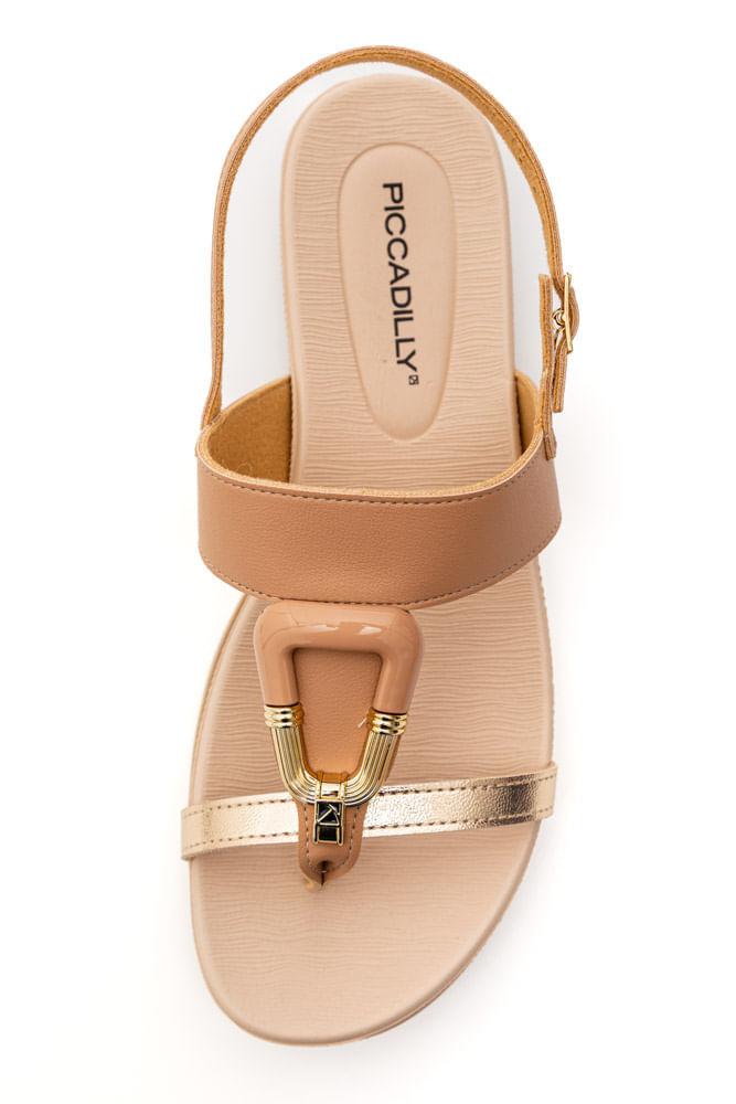 Para um dia de trabalho ou passeio urbano, combine a sandália rasteira Piccadilly com calça de alfaiataria ajustada, blusa fluida em tons neutros e bolsa estruturada. Finalize com acessórios delicados para um visual chic, confortável e elegante do início ao fim do dia.