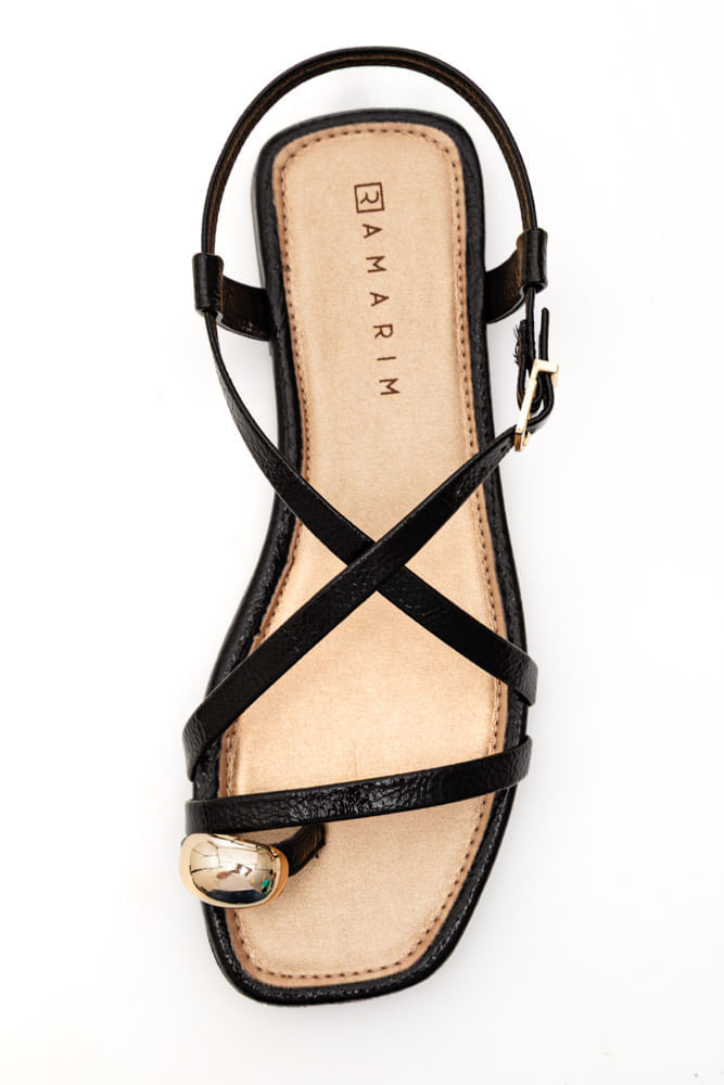 Para um visual casual de verão, combine a sandália Ramarim rasteira Toe Ring 2521205-01 com um vestido leve estampado, bolsa de palha e acessórios delicados em tons neutros. Finalize com óculos de sol e cabelo solto ou preso de forma natural. O look é fresco, elegante e perfeito para passeios, almoços ao ar livre ou encontros descontraídos.