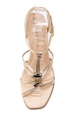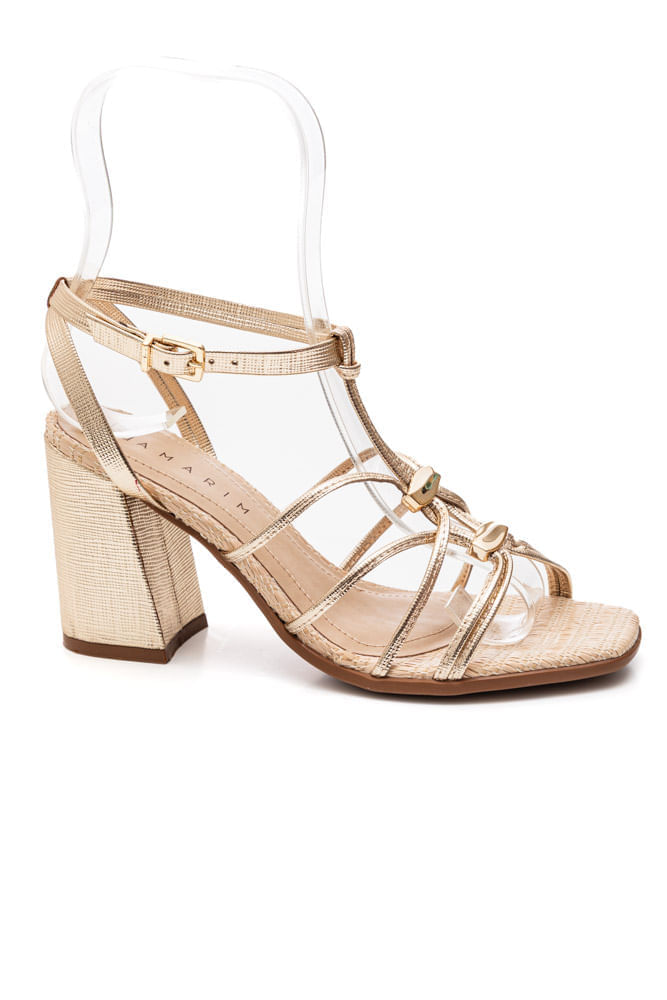 Combine a Sandália Ramarim Salto Alto Feminina com um macacão de alfaiataria bege e acessórios dourados para um visual sofisticado e moderno. Finalize com uma bolsa estruturada e maquiagem leve. Perfeita para um jantar especial ou evento noturno, essa produção equilibra elegância e conforto com o toque refinado das tiras metálicas.