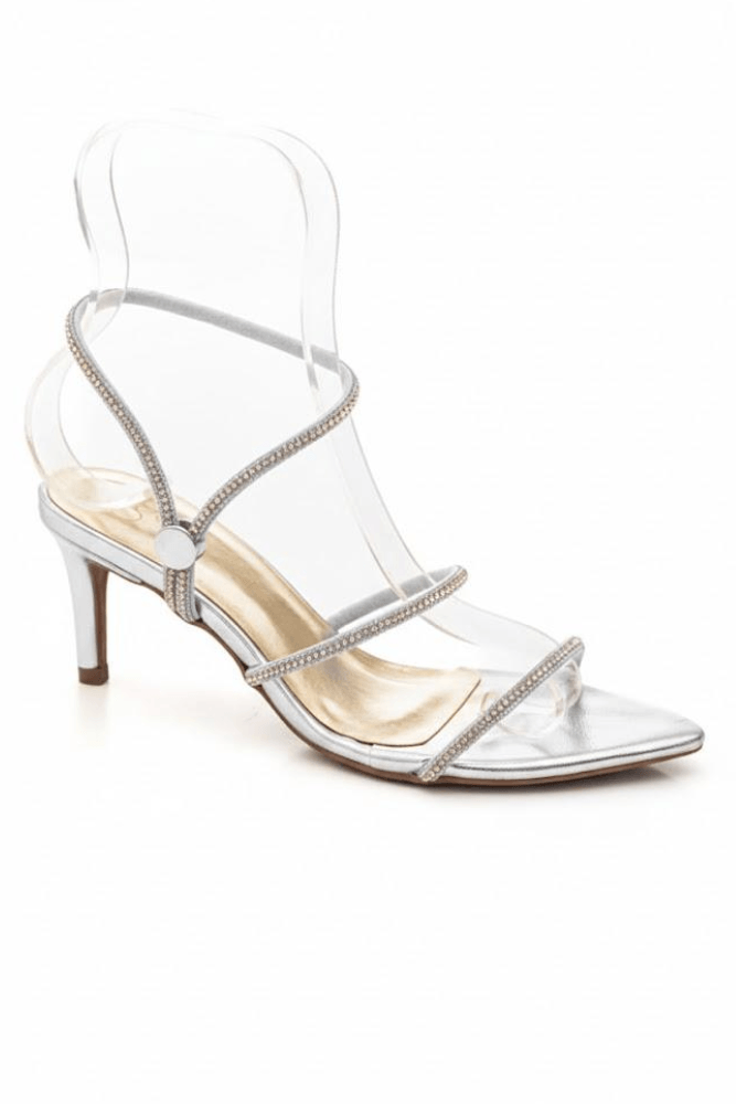 Sandália Salto Cha De Mel Bico Folha Feminina Tira Strass T6032-114 Prata