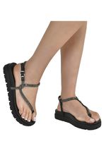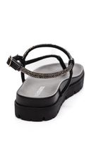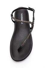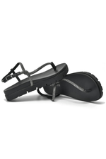 A Sandália Via Marte Rasteira Feminina Papete 102-008-01 é perfeita para quem busca conforto e estilo. O cabedal em napa casual preta é elegante e resistente, com uma tira reta próxima aos dedos, realçada por detalhes em strass que adicionam um brilho sutil. A palmilha anatômica oferece maciez e suporte, enquanto o solado flatform de PVC expandido garante leveza e durabilidade, com um salto de 3,5 cm que eleva sem perder o conforto. O fechamento por fivela no calcanhar ajusta-se perfeitamente, enquanto o forro em PU proporciona respirabilidade. Um acabamento sofisticado completa o design dessa sandália versátil e moderna.