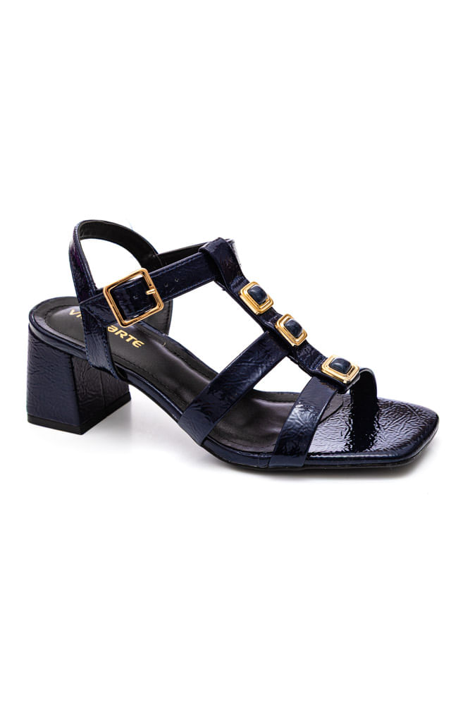 Sandália Via Marte Salto Bloco Feminina Verniz Glossy 171-034-01 Preto