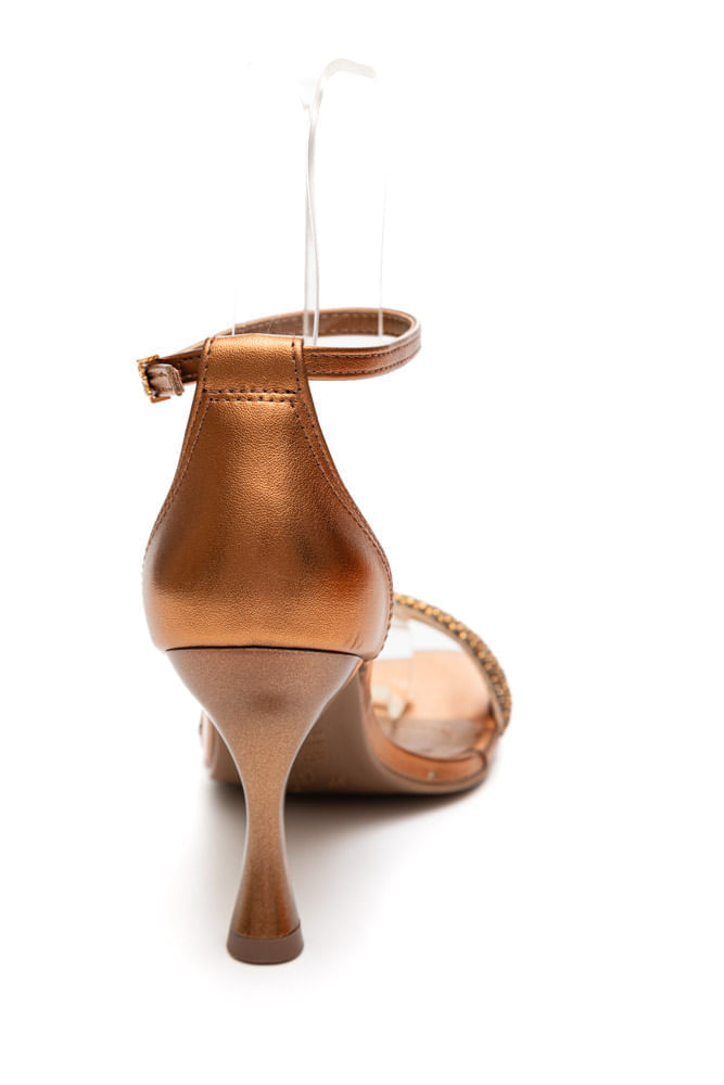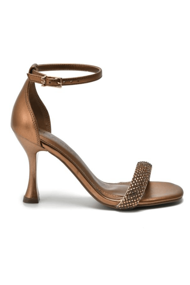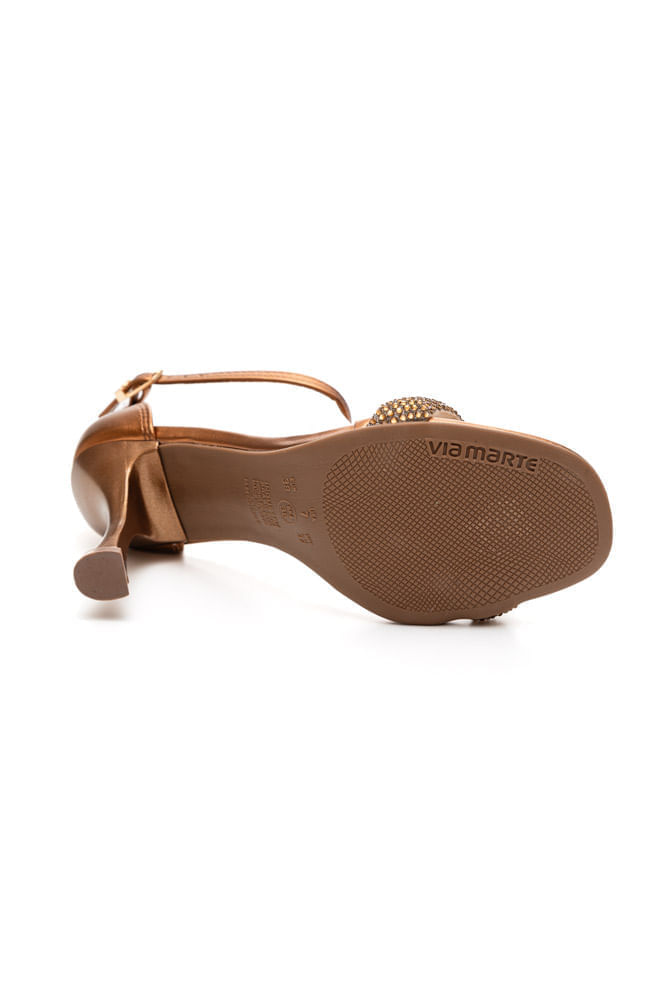 A Sandália Via Marte De Salto Alto Feminina Strass, modelo 149-009-01, está na categoria feminina e é perfeita para ocasiões especiais com seu estilo elegante e sofisticado. O material externo é sintético com acabamento metalizado na cor bronze, enquanto o material interno é forrado em PU sintético. O solado é feito de PVC cristal, proporcionando leveza e durabilidade. Possui um salto alto de 10 cm em ABS e fechamento com tira ajustável. A palmilha e a calcanheira garantem conforto, e a tira delicada com strass acrescenta um toque de glamour. Elegante e confortável, é uma escolha deslumbrante para destacar qualquer look.