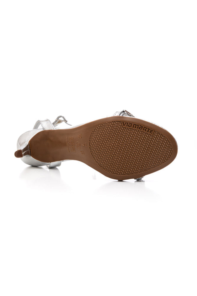 A Sandália Via Marte Salto Alto Feminina Metalizada 282-004-01 é feita em material sintético com acabamento metalizado, trazendo brilho e sofisticação ao visual. O modelo possui bico levemente arredondado e salto alto fino de 10,5 cm em ABS, garantindo elegância e postura alongada. A palmilha em sintético PU oferece conforto ao caminhar, enquanto o solado em PVC expandido proporciona resistência e segurança. O fechamento é feito por fivela na tira do tornozelo, permitindo ajuste perfeito e firmeza. Detalhes como a tira frontal com enfeite de brilho chamam atenção e conferem glamour, tornando esta sandália ideal para festas e ocasiões especiais, unindo estilo e conforto com charme irresistível.
