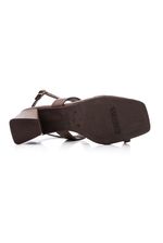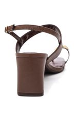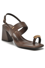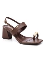 Para um look elegante e sofisticado, combine a sandália Via Marte marrom com vestido midi fluido em tons neutros e bolsa estruturada. Acrescente acessórios discretos em dourado e um blazer leve para complementar. O salto bloco de 8¿cm garante conforto e estabilidade, enquanto o detalhe cromado no dedo adiciona um toque moderno e sofisticado ao visual.