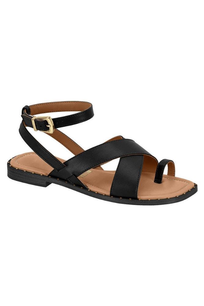Para um look casual chic com a Sandália Vizzano rasteira, combine-a com uma calça pantacourt em tecido leve, blusa de alfaiataria fluida e bolsa estruturada. Finalize com acessórios delicados e cabelo preso baixo. O visual é ideal para passeios, trabalho informal ou encontros, garantindo elegância, conforto e praticidade o dia todo.