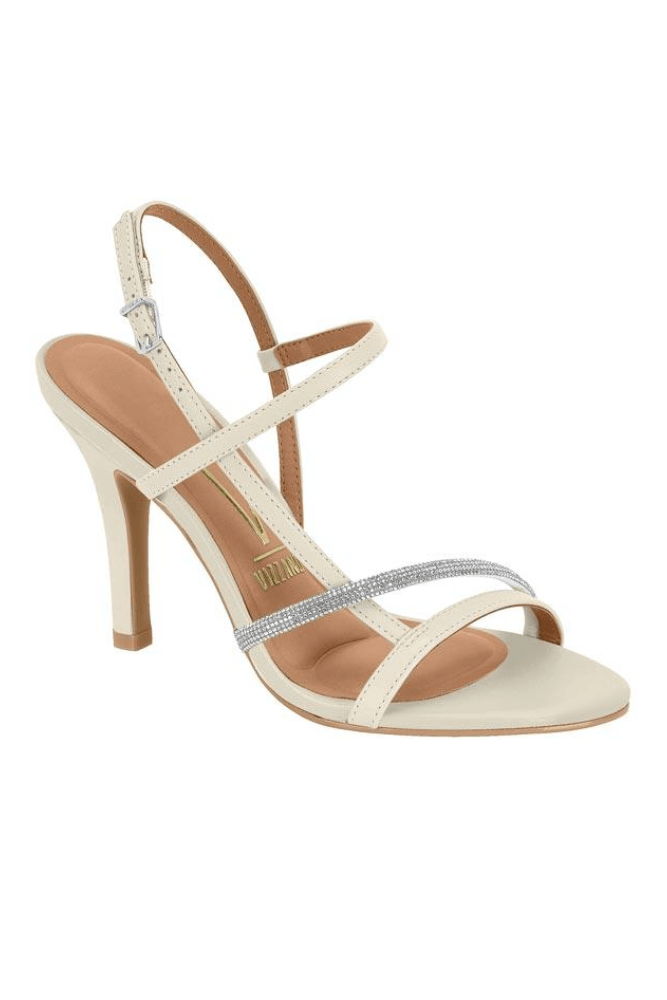 Para um jantar especial ou evento noturno, combine a sandália Vizzano salto fino com strass com um vestido midi preto ou metalizado. Acrescente bolsa pequena estruturada, brincos delicados e maquiagem iluminada. Finalize com cabelo preso ou semi-preso para valorizar o brilho do calçado e criar um visual elegante e feminino.