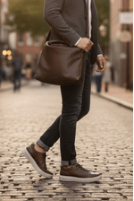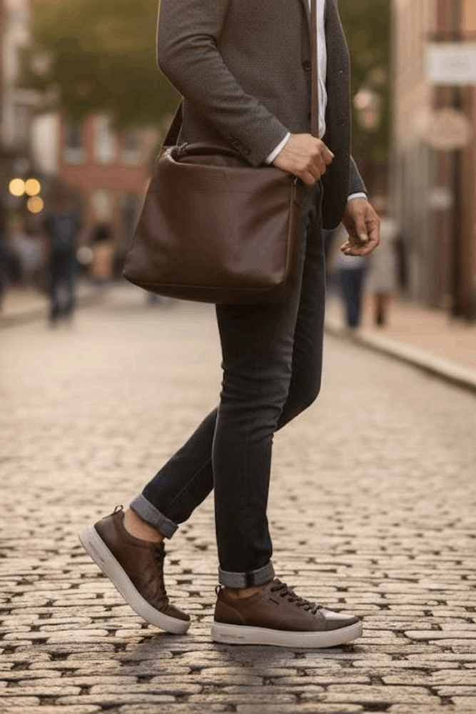 Para um look casual e moderno, combine o Sapatênis Pegada em Couro com jeans slim escuro, camiseta básica branca e jaqueta bomber marrom. Adicione um relógio de couro e óculos de sol para um toque de estilo. Ideal para encontros, passeios ou eventos informais, o sapatênis garante conforto e sofisticação em qualquer ocasião.