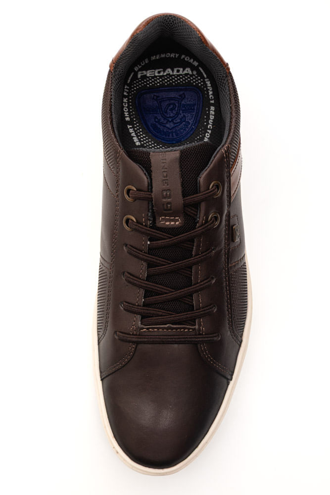 Para um visual casual urbano, combine o sapatênis Pegada marrom com uma calça chino bege ou jeans escuro, camiseta básica ou camisa polo em tons neutros e cinto de couro. Finalize com relógio discreto e jaqueta leve. Um look confortável, moderno e versátil, ideal para trabalho informal, passeios ou encontros.