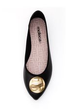 Para um look casual chic com a Sapatilha Moleca Rasteira, combine uma calça jeans de cintura média com corte reto, blusa de tecido leve com mangas bufantes e uma bolsa tiracolo estruturada. Finalize com acessórios dourados discretos e cabelo preso em coque baixo. Ideal para um almoço, passeio ou ambiente de trabalho descontraído.