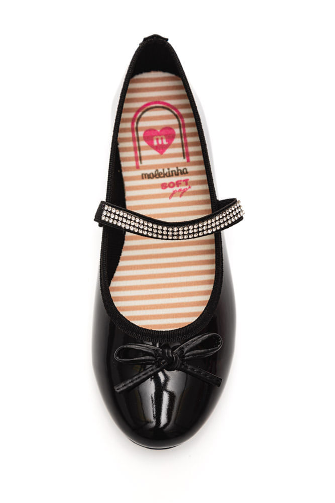 Sapatilha Molekinha Casual Juvenil Menina Verniz E Strass 2502.1002 Preto
