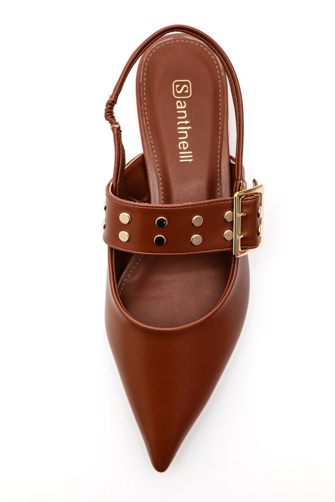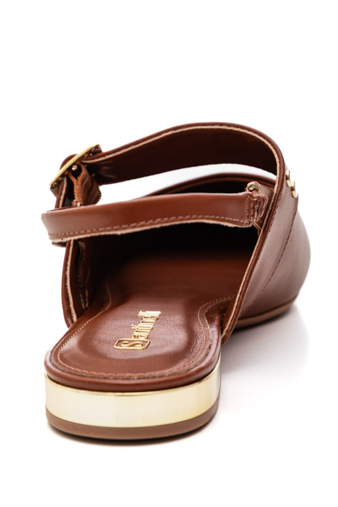 A Sapatilha Santinelli Slingback Feminina Bico Fino 1652-046 combina elegância e conforto em um design moderno e sofisticado. Confeccionada em material sintético de alta qualidade, apresenta acabamento liso e estrutura firme que valoriza o visual. O bico fino alonga a silhueta dos pés, enquanto a tira slingback com elástico garante ajuste perfeito e prático. Seu destaque fica por conta da fivela decorativa com aplicação de metais dourados, que confere um toque de charme e personalidade ao modelo. A palmilha é macia e anatômica, proporcionando conforto para o uso prolongado, e o solado emborrachado oferece estabilidade ao caminhar. Ideal para compor looks elegantes do dia a dia ou produções sociais com estilo e sofisticação.