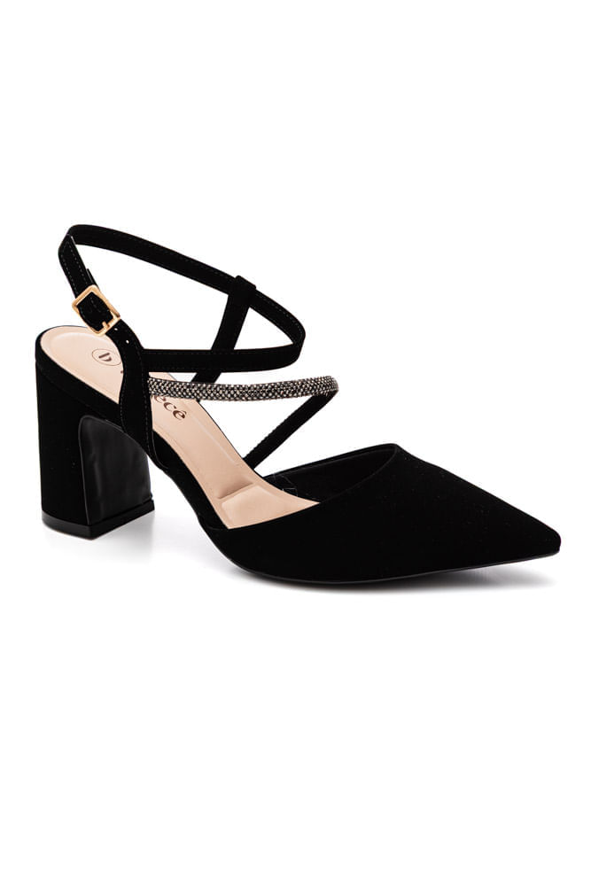 O Sapato Bebecê Scarpin Slingback Salto Bloco Feminino T7021-227 é a união perfeita entre sofisticação e conforto. Da categoria scarpin slingback, ele conta com cabedal em nobuck, que confere textura aveludada e toque refinado. A sola é em borracha sintética com salto de aproximadamente 6 cm, garantindo aderência e segurança ao caminhar. Seu bico fino alonga a silhueta e adiciona elegância ao visual. O fechamento é por fivela lateral ajustável, com tiras cruzadas que valorizam o peito do pé, uma delas com aplicação em strass, que proporciona brilho sutil e charme. A palmilha acolchoada, junto à calcanheira macia e acabamento interno confortável, oferece bem-estar durante todo o uso. Ideal para elevar produções formais ou sofisticadas com um toque moderno.