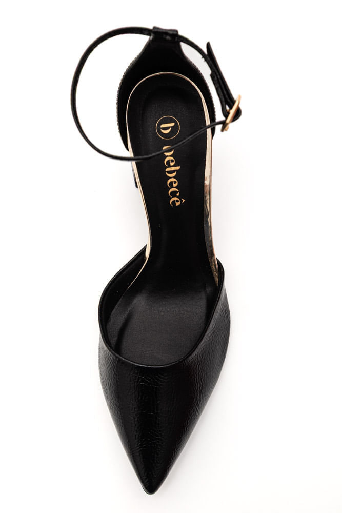 Para um look elegante de trabalho ou evento noturno, combine o scarpin slingback Bebecê preto com vestido midi de alfaiataria ou saia lápis e blusa fluida. Aposte em bolsa estruturada, cinto fino e acessórios dourados para harmonizar com os detalhes do sapato. Um visual sofisticado, feminino e confortável, perfeito para destacar seu estilo com elegância.