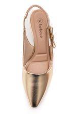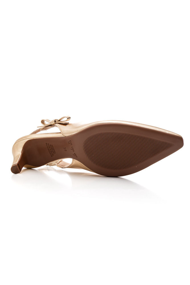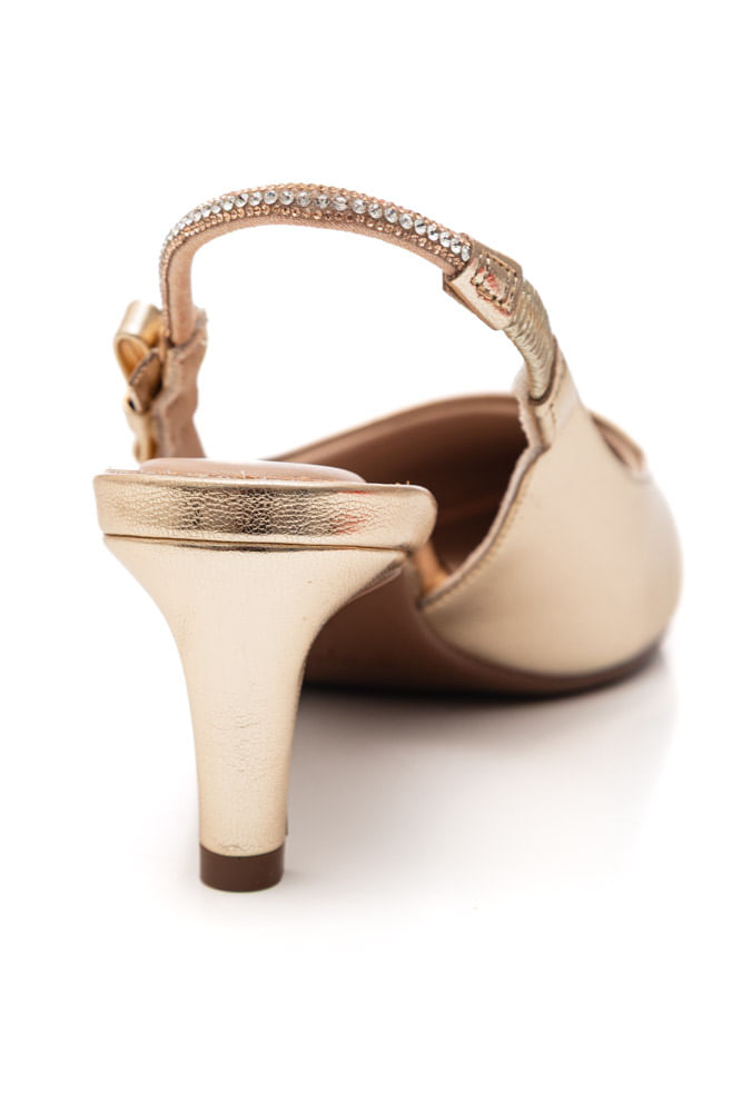 O Sapato Bebecê slingback feminino scarpin T6310-209 é a escolha perfeita para quem busca sofisticação com leveza. Pertencente à categoria scarpin slingback, é confeccionado em material sintético com acabamento metalizado, que garante um visual elegante e moderno. O fechamento em tira traseira com fivela ajustável proporciona segurança e ótimo encaixe aos pés. A sola em material sintético oferece estabilidade ao caminhar, enquanto o bico fino alonga a silhueta e valoriza o visual. O salto fino médio traz feminilidade sem abrir mão do conforto. Conta com palmilha macia, ideal para uso prolongado. Como destaque estético, o tom ouro metalizado chama atenção e eleva qualquer produção. Um scarpin versátil que adiciona glamour aos looks formais, festivos ou até às produções do dia a dia, com o benefício de unir estilo e conforto em cada passo.