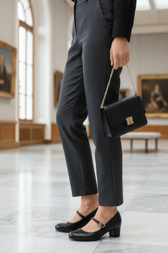 Para quem trabalha com trajes mais formal e/ou corporativo, aposte em uma calça de alfaiataria ou saia midi, com um lindo scarpin preto ou nude. Já em looks mais casuais como usá-lo com jeans, vai deixar sua composição mais sofisticada e elegante, e para dar um toque a mais, deixa a barra da calça dobrada para que apareça e permaneça definida seus traços da perna.
