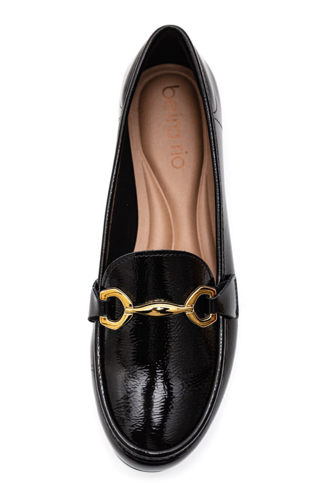 Sapato Beira Rio Mocassim Feminino Em Verniz 4324.101 Preto