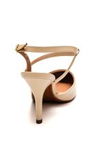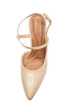 O Sapato Beira Rio Scarpin Feminino Salto Alto 4122.1484 possui cabedal em material sintético de alta qualidade com bico fino simétrico. Possui tiras finas e dispostas em sentido reto em torno do calcanhar. O fechamento é com fivela. A construção é delicada, com um salto alto fino (agulha) de aproximadamente 9,0 cm. A palmilha é acolchoada para maior conforto, e a calcanheira é reforçada. O forro interior é de tecido suave, proporcionando um uso confortável. O solado é feito de borracha antiderrapante, garantindo segurança. O estilo da peça é elegante e sofisticado, com detalhes decorativos minimalistas, incluindo costuras sutis que realçam o design moderno.