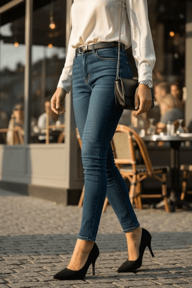 Por ser um sapato bastante tradicional, o scarpin vai bem em ocasiões mais especiais. Se você trabalha usando traje formal esse scarpin é ideal para você. Cortes mais retos e tecidos mais encorpados, são os mais adequados. O - também tradicional - terno feminino ou o conjunto pode ser o mais indicado na composição. E suas variações como um blazer alongado e jeans reto. Ou camisa + saia lápis. Ocasiões: trabalho formal, eventos especiais, jantares, eventos clássicos à tarde.