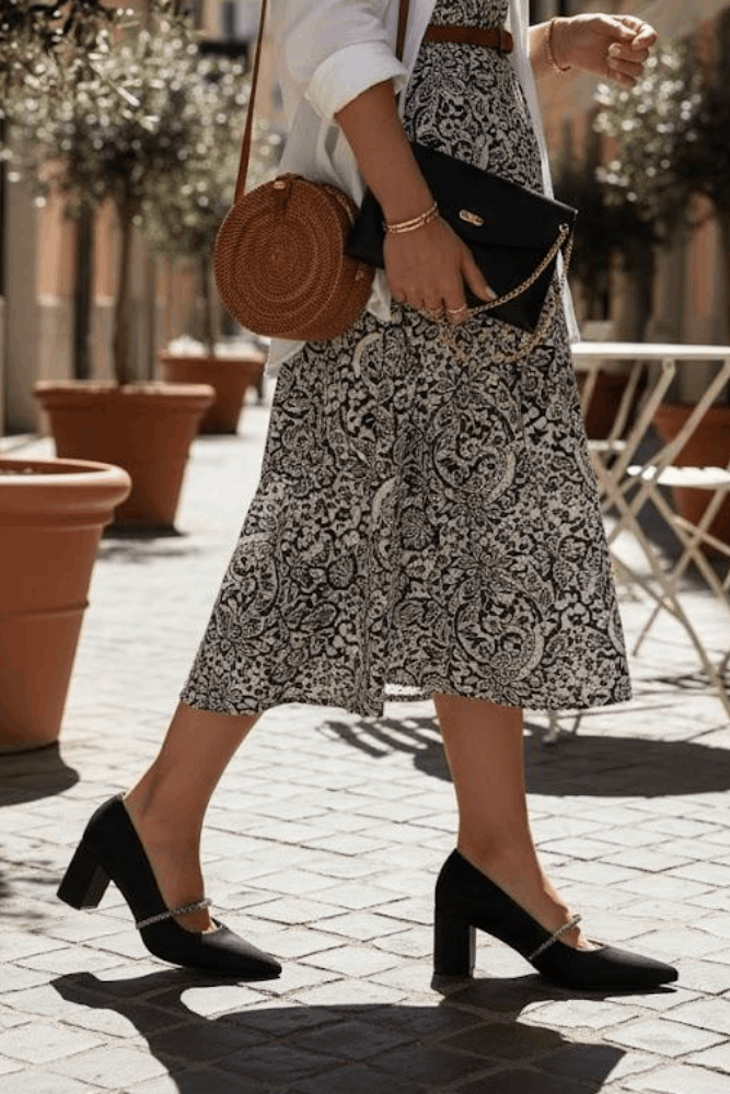 Combine o scarpin com um vestido longo ou curto, com detalhes em brilho ou pedrarias. Essa combinação é perfeita para ocasiões formais, festas e eventos noturnos, adicionando um toque de glamour ao seu visual. Use o sapato com um vestido de madrinha ou convidada. Seu design clássico com detalhes em strass confere um toque sofisticado ao look, tornando-o adequado para casamentos e eventos especiais. Combine o scarpin com um conjunto de calça e blazer, ou uma saia midi e uma blusa elegante. Essa combinação é perfeita para coquetéis, eventos sociais e ocasiões que exigem um visual mais formal. Use o sapato com um conjunto de calça de alfaiataria e uma camisa. Essa combinação é ideal para um look profissional e elegante, adequado para ambientes de trabalho mais formais.