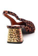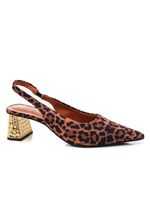 O Sapato Chá De Mel Chanel Feminino Z6849-30089-06 possui cabedal em material têxtil com textura aveludada em estampa animal print, trazendo um visual sofisticado e moderno. A palmilha é macia e acolchoada, proporcionando conforto durante o uso prolongado. O solado é em borracha antiderrapante, garantindo segurança ao caminhar. O salto é médio, em formato bloco, com aproximadamente 5 cm de altura, oferecendo excelente estabilidade. Possui tira traseira no estilo slingback com elástico discreto, facilitando o ajuste ao calcanhar. O forro interno é têxtil suave e a calcanheira levemente acolchoada aumenta o conforto. O bico é fino, valorizando a silhueta com elegância. A abertura traseira facilita o calce prático. O destaque fica por conta do salto com acabamento dourado texturizado, enquanto o acabamento refinado reforça sua sofisticação, sendo a escolha perfeita para quem deseja unir estilo marcante e conforto no dia a dia.