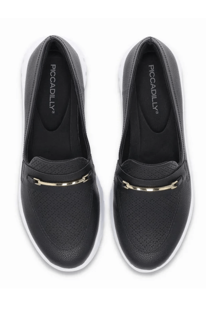 O sapato Piccadilly é a escolha ideal para quem busca conforto absoluto aliado a um visual moderno e versátil. Com design clean e acabamento em tom preto, ele apresenta um solado anatômico que proporciona leveza e estabilidade a cada passo.