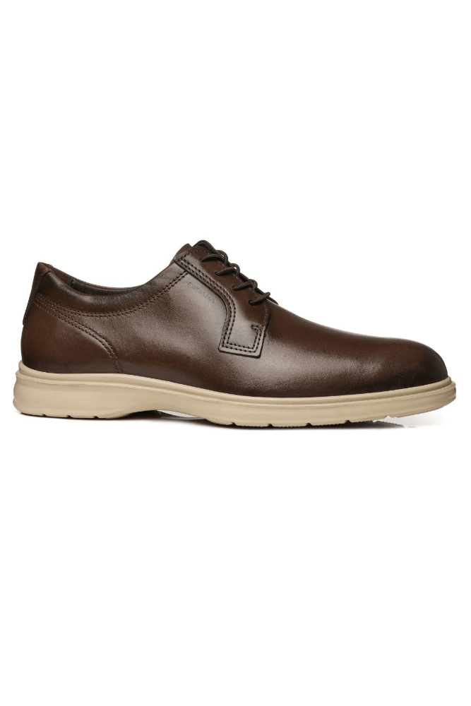 O Sapato Pegada Social Masculino Em Couro 127101-03, da linha Barcelona, é um sapato social masculino em couro marrom, desenvolvido para unir elegância e conforto no dia a dia. O cabedal em couro garante maciez, resistência e durabilidade, enquanto a sola leve e flexível, com tecnologia de injeção direta, oferece estabilidade e ótima absorção de impacto. Possui bico levemente arredondado, visual moderno e versátil, além de fecho com cadarço elástico Calce Fácil, que dispensa amarração e facilita o calçar. A palmilha em EVA macio, a calcanheira acolchoada, o acabamento interno suave e o colarinho baixo confortável proporcionam bem-estar prolongado. Com estética sofisticada de inspiração cosmopolita, detalhes discretos e acabamento refinado, é ideal para quem busca praticidade, conforto e estilo em todas as ocasiões.