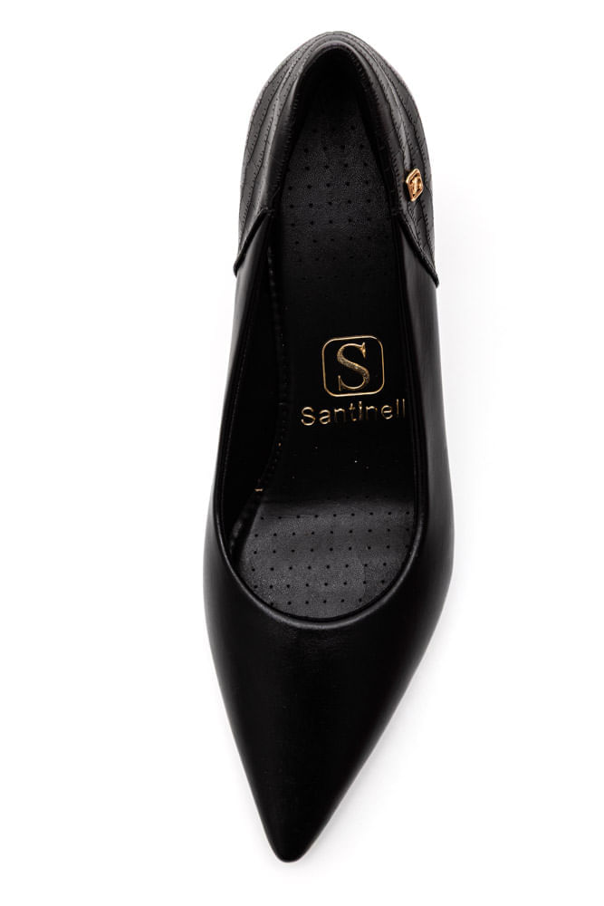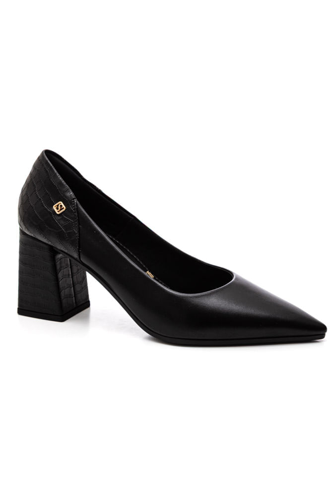 O Sapato Santinelli Salto Alto Feminino Scarpin 1606-028 é a perfeita combinação entre elegância e conforto. Produzido em material sintético de alta qualidade, possui acabamento liso na parte frontal e textura croco no calcanhar, agregando sofisticação ao visual. O bico fino alonga a silhueta e o salto bloco alto de 7,5 cm garante estabilidade e charme em cada passo. A palmilha macia proporciona conforto prolongado, enquanto o solado emborrachado assegura firmeza ao caminhar. O design moderno com toque clássico torna o modelo ideal para compor looks de trabalho ou ocasiões especiais. Versátil e estiloso, esse scarpin é a escolha certa para mulheres que buscam beleza, confiança e conforto em um só calçado.