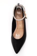 O Sapato Santinelli Salto Baixo Feminino Com Tira Em Strass 1546-007 é a escolha perfeita para quem busca elegância e conforto em um único produto. Confeccionado em material sintético, possui um salto médio grosso e quadrado de 4,5 cm, que garante estabilidade sem abrir mão do estilo. O bico fino e o fecho com tira em strass, que envolve o tornozelo, adicionam um toque de sofisticação. O pequeno pingente em forma de coração é um detalhe delicado e encantador. Sua palmilha acolchoada com perfurações proporciona conforto ao longo do dia, enquanto a sola em TR antiderrapante garante segurança. Ideal para diversas ocasiões, esse sapato combina design moderno com a tradição do scarpin.