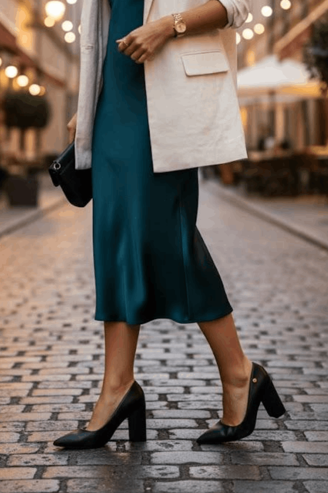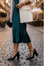 Para quem trabalha com trajes mais formal e/ou corporativo, aposte em uma calça de alfaiataria ou saia midi, com um lindo scarpin preto ou nude. Já em looks mais casuais como usá-lo com jeans, vai deixar sua composição mais sofisticada e elegante, e para dar um toque a mais, deixa a barra da calça dobrada para que apareça e permaneça definida seus traços da perna.