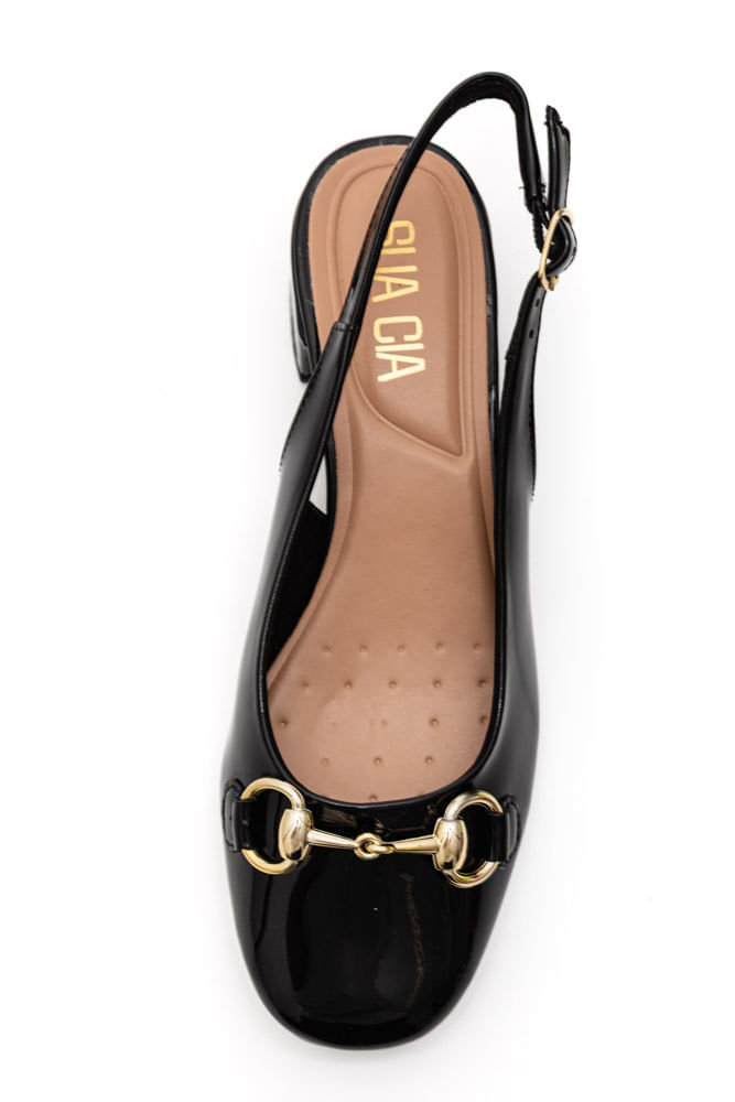 Sapato Slingback Sua Cia Salto Bloco Feminino Verniz 8380.15967 Preto