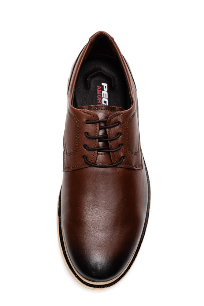 O Sapato Social Pegada Masculino em Couro, modelo 126101-04, é ideal para quem busca sofisticação com um toque moderno. Confeccionado em couro marrom de alta qualidade, oferece maciez, resistência e durabilidade. Seu interior é forrado com tecido espumado, garantindo conforto e absorção do suor, mantendo os pés secos e arejados. A palmilha macia proporciona excelente conforto ao caminhar, enquanto o solado leve e flexível incorpora a Tecnologia AMORTECH, com amortecimento por bolha de ar para redução de impactos. Possui fechamento em elástico para praticidade e ajuste firme, além de um bico redondo que complementa seu design despojado e elegante.