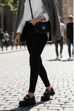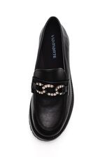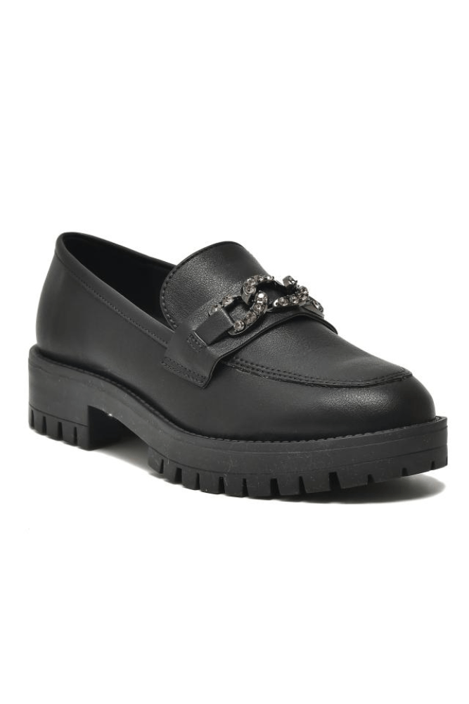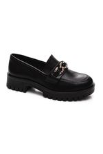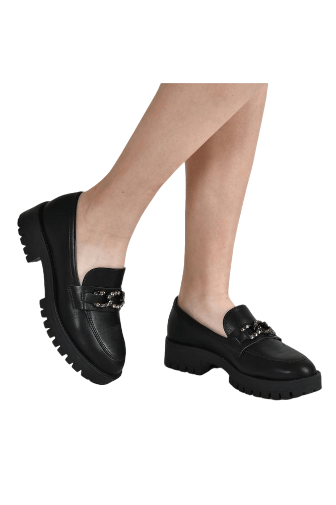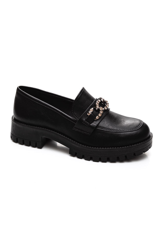 Para usar este mocassim, combine-o com calças jeans ou de alfaiataria para um look casual chic. Ele também complementa perfeitamente saias e vestidos, adicionando um toque de elegância sem comprometer o conforto. Ideal para o ambiente de trabalho, este modelo é versátil o suficiente para transitar entre compromissos profissionais e sociais com facilidade. O brilho da corrente frontal adiciona um detalhe sofisticado que eleva qualquer conjunto.