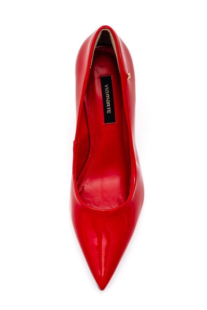 Sapato Via Marte Scarpin Feminino Verniz Salto Cromado 145-010-04 Vermelho