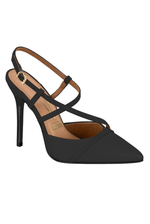 Para um evento noturno ou jantar elegante, combine o scarpin slingback Vizzano 1421.115.7286 com um vestido midi preto de corte reto. Acrescente clutch estruturada e acessórios dourados delicados. Finalize com maquiagem sofisticada e cabelo preso, criando um look feminino, moderno e poderoso, perfeito para destacar a elegância do salto alto com muito estilo.