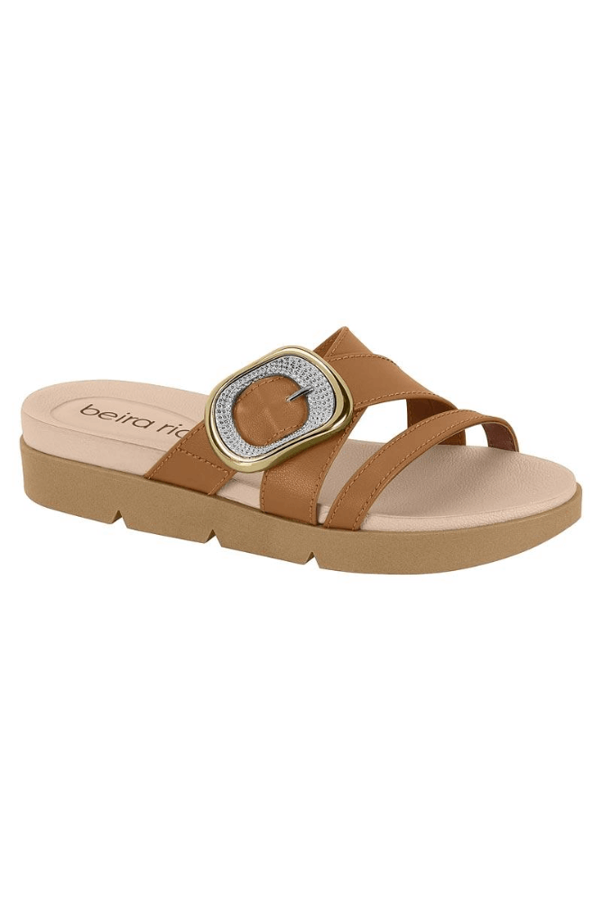 Tamanco Beira Rio Rasteiro Feminino Fivela 8387.546.9569 Caramelo