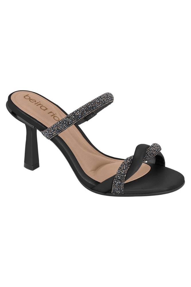 Tamanco Beira Rio Salto Alto Feminino Strass 8545.102