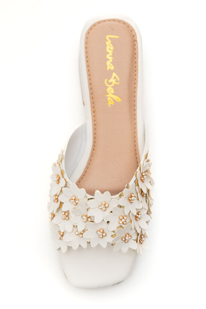 Tamanco Casual Feminino Salto Baixo Flores Meyre 514 Branco