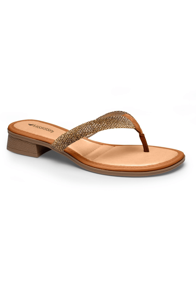 O Tamanco Mississipi Salto Bloco Feminino Strass J0981-03 é a escolha ideal para quem busca unir charme, conforto e praticidade nos dias mais quentes. Pertencente à categoria casual feminino, o modelo é confeccionado em material alternativo de alta qualidade, garantindo leveza e durabilidade. O design tipo dedo dispensa fechamento, oferecendo calce fácil e rápido. Seu bico arredondado proporciona conforto aos pés, enquanto a palmilha macia contribui para o bem-estar prolongado. O solado resistente conta com salto bloco separado de aproximadamente 3,5 cm, que garante estabilidade e segurança ao caminhar. A estética é o grande destaque: a tira frontal é ricamente adornada com strass dourados e acabamento com glitter, criando um visual elegante e iluminado. Versátil e sofisticado, o tamanco Mississipi é perfeito para passeios, encontros e produções de verão, entregando como principal benefício conforto aliado a um toque de glamour em qualquer ocasião.