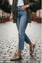 Para um look casual-chic, combine o Tênis Sua Cia com jeans skinny de lavagem escura e uma blusa de malha preta, dando destaque ao animal print. Complete com uma jaqueta de couro preta e acessórios dourados para um toque de elegância. Perfeito para um encontro casual ou para um passeio pela cidade com muito estilo e conforto!